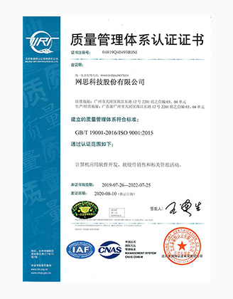 网思科技凭借雄厚的技术实力成功获得CMMI5、CCRC、6个ISO标准认证等资质,并被授予国家专精特新小巨人企业、国家高新技术企业、广东省专精特新中小企业和广州未来独角兽创新企业等多项政府和行业的重要荣誉。